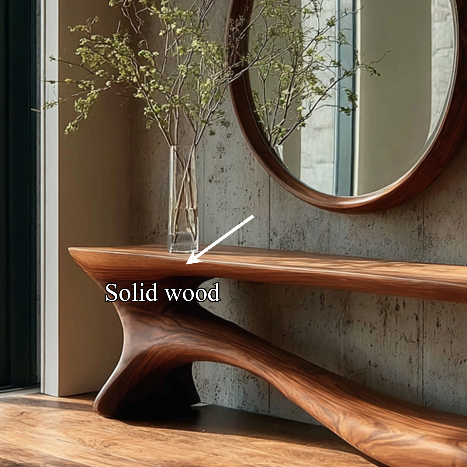 Handcrafted from natural solid wood, each console table is a testament to the unique beauty of wood. The wood grains shown in the images are for illustrative purposes only, as each piece has its unique grain pattern and pattern. This variation highlights the individuality of each table and ensures that you own a truly unique and unrepeatable piece of furniture.