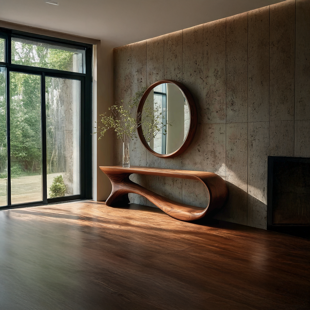 Wodaho Wall Round Mirror Console Table – Reclaimed Wood Décor Gift